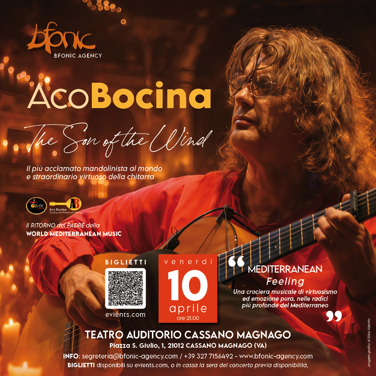 Aco Bocina è comunemente riconosciuto come uno dei più grandi mandolinisti al mondo e come massimo virtuoso della chitarra, dotato di un’abilità tecnica straordinaria e animato da una passione mediterranea, il suo stile versatile abbraccia generi che vanno dalla musica classica al folk e al pop, attraversando i confini culturali e spaziano dai Balcani all’Andalusia, dall’Oriente alla Grecia, seguendo le suggestive tracce tzigane